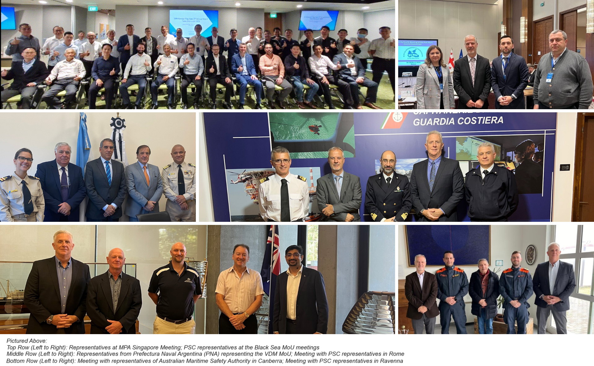 The Registry recognizes that building understanding and awareness with partner organizations enhances safe vessel operation and overall maritime safety. These partnerships and meetings, often held annually, focus on building professional relationships, discussing trends, and the internal activities within the RMI Registry to support safe vessel operation and compliance, as well as feedback from PSC authorities on any areas of concern or of special attention.